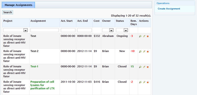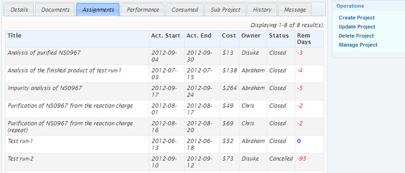 Reveal all the information for relevant assignments for any project with a single click. You can see the detail of any assignment by clicking onto specific assignment.
