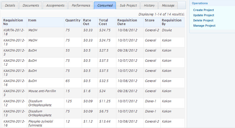 Track project related requisitions and issues at any time to get the historical consumption information for a project. This is also an extremely important reference for planning of similar project in future.