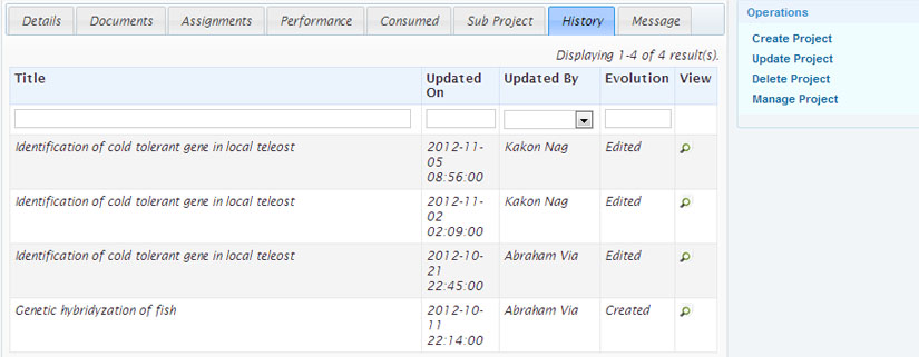 Instantly identify how the project has been evolved – for example, who has created the project, who has modified or edited it and when. One can edit the project info if allowed to do so but all the change history will be recorded for traceability of the changes.