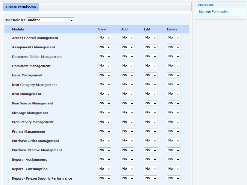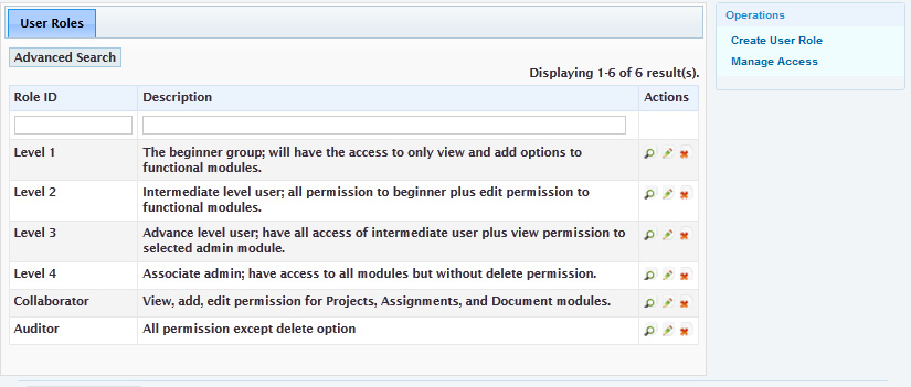 Allow different level of access to the modules based on role. Depending on the given permission a person can view, edit, add and delete any specific information or task. It is suggested not to allow delete permission to any role except it is essential.