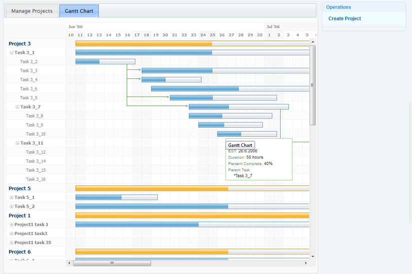 Identify the interdependencies of projects and assignments, as well as crystal clear information regarding the progress of any project or activity using this highly interactive Gantt chart in real-time.