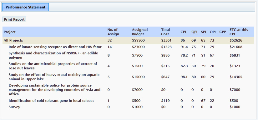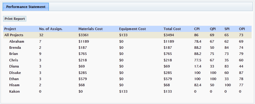 Know the performance values specifically, cost performance index, quality performance index, schedule performance index, and overall performance index to identify how the project is progressing.